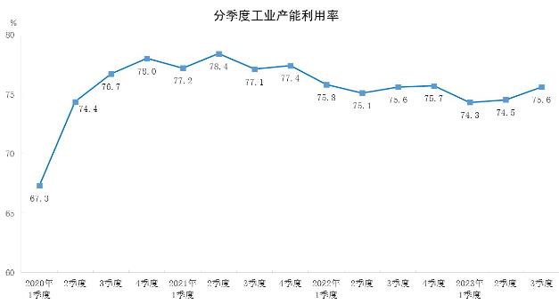 三季度,全国工业产能利用率为75.6%,与上年同期持平,比二季度上升1.1个百分点。
