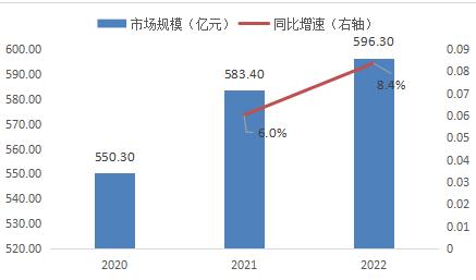 根据市场调研数据分析,2020-2022年中国电子认证行业市场规模呈现逐年增长趋势,2022年市场规模为596.3亿元,同比增长8.4%。