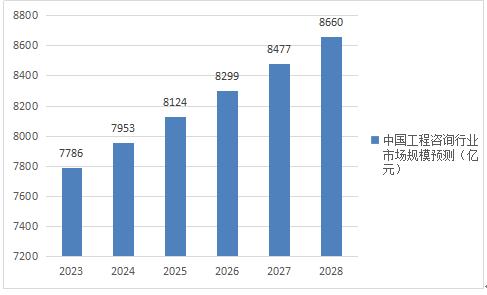 图表:2023-2028年中国工程咨询行业市场规模预测(单位:亿元)
