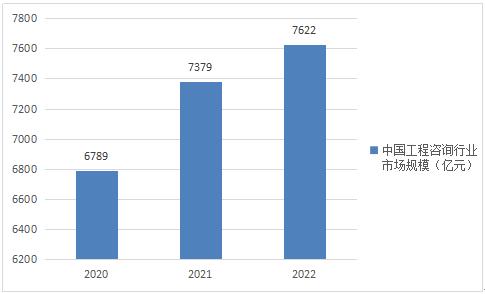 随着国内城市化进程不断推进、基础设施建设不断扩大,以及工业、交通、能源等领域的快速发展,工程咨询服务的需求也呈现出持续增长的趋势,这主要得益于政府对基础设施建设的重视和投入,以及新兴领域如智能城市、新能源等的发展,对工程咨询服务的需求也不断增加。此外,科技创新带来的新技术、新理念的应用也推动了工程咨询行业的发展,为企业提供了更多增值服务。根据相关数据,2022年我国工程咨询行业市场规模超过了7600亿元。