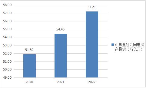 图表:2020-2022年全社会固定资产投资(单位:万亿元)