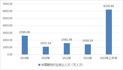 图表:2019-2023年上半年中国剧场行业观众人次(万人次)
