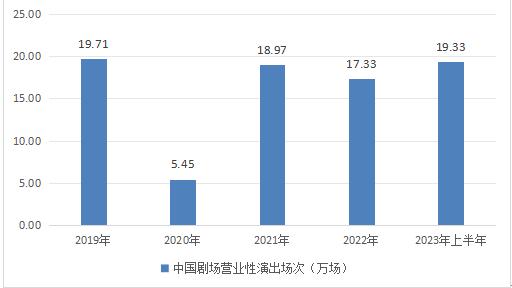 图表:2019-2023年上半年中国剧场营业性演出场次(万场)
