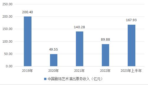 图表:2019-2023年上半年中国剧场艺术演出票务收入(亿元)