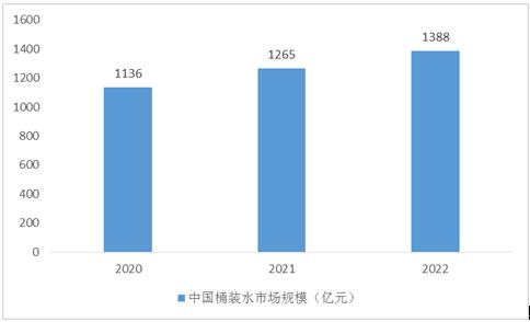 图表:2020-2022年中国桶装水行业市场规模