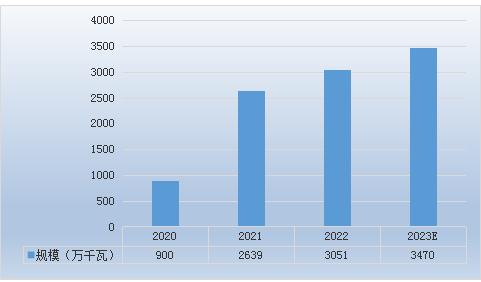 图表:2020-2023年海上风力发电行业装机状况