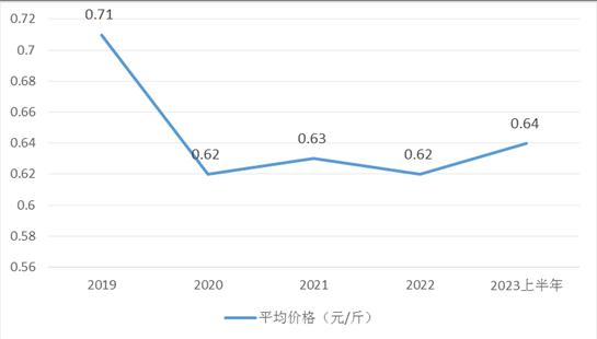 2020年至2023上半年期间,甘蔗的价格走势呈现不景气的趋势,价格很难涨上去。