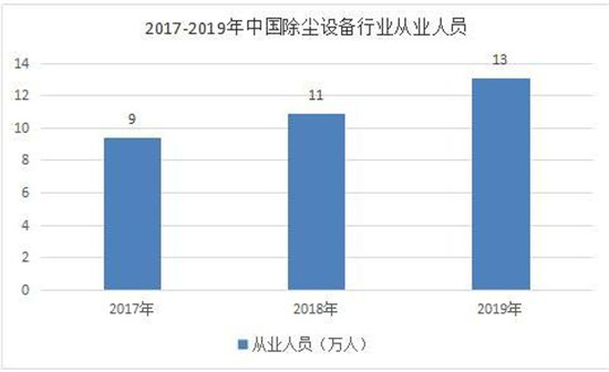图表:2017-2019年中国除尘设备行业企业人员情况