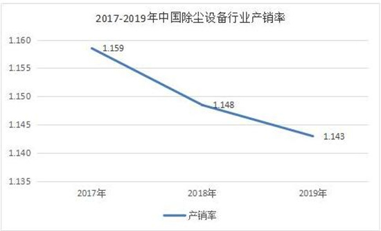 据数据显示,2017年中国除尘设备行业产销率1.159,2018年中国除尘设备行业产销率1.148,2019年中国除尘设备行业产销率1.143。