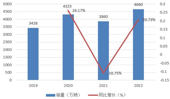 图表:2019-2022年电动自行车销量