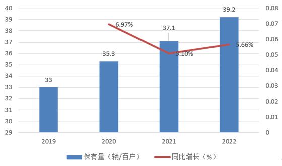 图表:2019-2022年电动自行车保有量