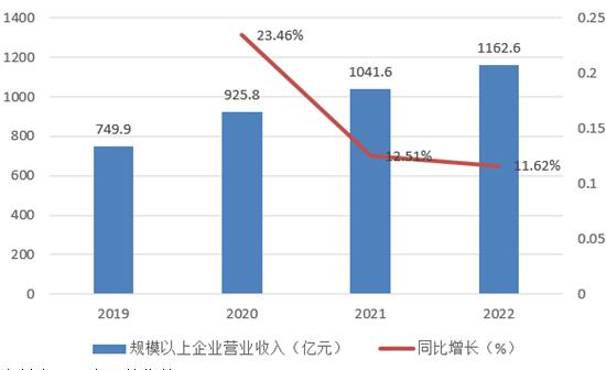 一、2019-2022年电动自行车规模以上企业营业收入