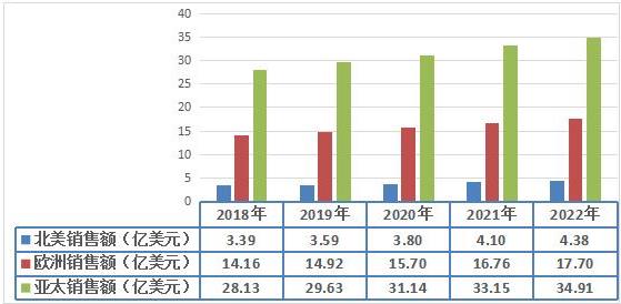 图表:2018-2022年全球主要地区风电设备健康监控系统行业销售额分析