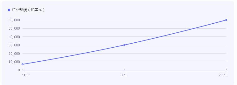 根据相关统计显示,全球人工智能产业规模已从2017年的6900亿美元增长至2021年的3万亿美元,并有望到2025年突破6万亿美元,2017-2025年有望以超30%的复合增长率快速增长。