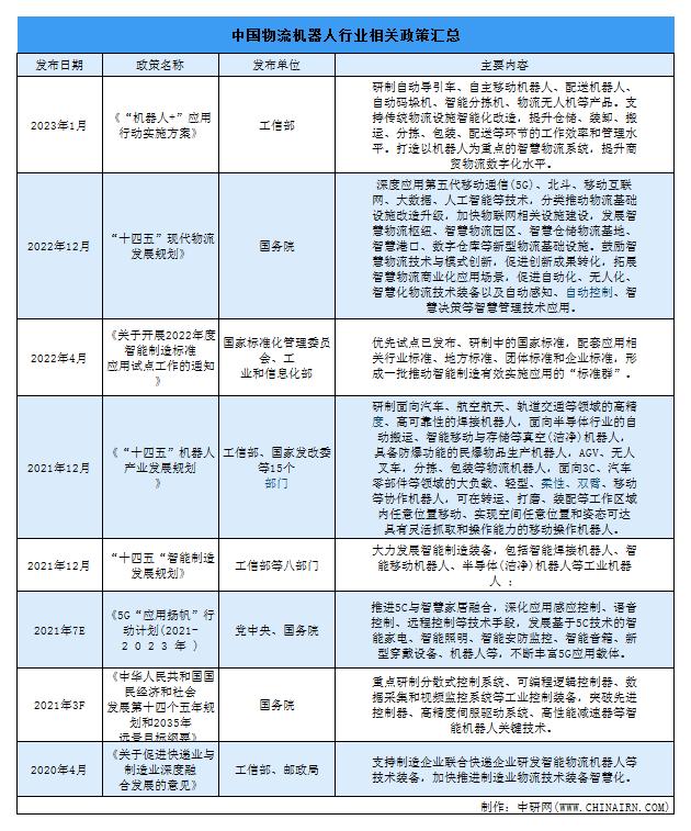 中研普华研究院出版的《2023-2028年中国物流机器人行业市场调研与投资前景分析报告》汇总了近几年物流机器人行业相关的政策法规,具体如下: