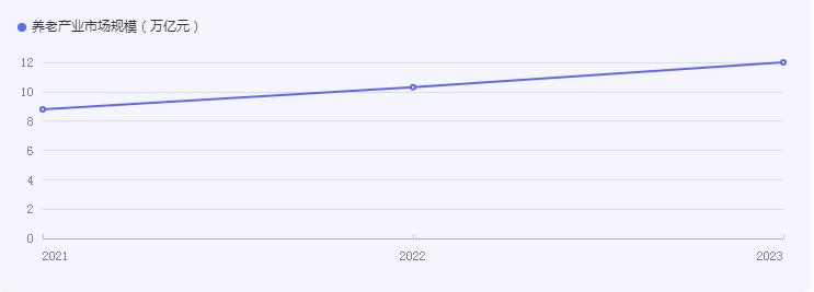 据相关研究报告显示,2021年、2022年中国养老产业市场规模达8.8万亿元、10.3万亿元,养老相关企业具有广阔的发展前景,主要问题是市场巨大、产业供给不足。预计2023年市场规模或将达到12万亿元。