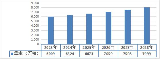 随着中国经济的不断发展和人民生活水平的提高,汽车市场的需求将继续保持增长态势,从而带动汽车车桥市场的需求增长,预计2028年中国汽车车桥市场需求规模达到7999万根,同比增长6.53%。