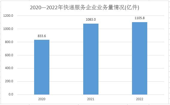 近年来,随着市场需求的快速提升以及快递行业的高速发展,快递业务量也在高速增长。2016-2021,我国快递业务量迅速增长,保持在20%以上的增长速度。2021年,全国快递业务量累计完成1083.0亿件,较2020年增长29.9%。2022年全国快递服务企业业务量累计完成1105.8亿件,同比增长2.1%。中国国家邮政局监测数据显示,截至2023年4月6日,2023年中国快递业务量达300亿件,比2019年达到300亿件提前了99天,比2022年提前了18天。