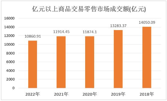 图表:亿元以上商品交易零售市场成交额(亿元)