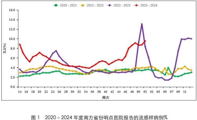 根据中疾控1月4日公布的2023年第52周流感样病例报告显示,南方省份哨点医院报告的流感样病例百分比为9.6%,高于前一周水平(8.8%),高于 2020~2022 年同期水平(3.6%、4.0%和8.4%),且流行的流感病毒以甲型H3N2亚型为主。