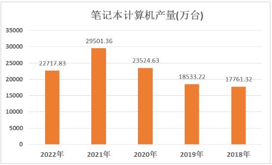 图表:2018年-2022年笔记本计算机产量(万台)