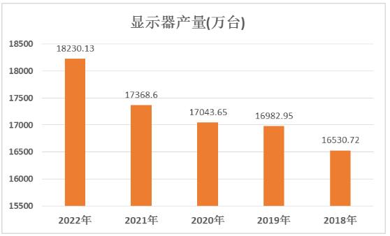 图表:2018年-2022年显示器产量(万台)