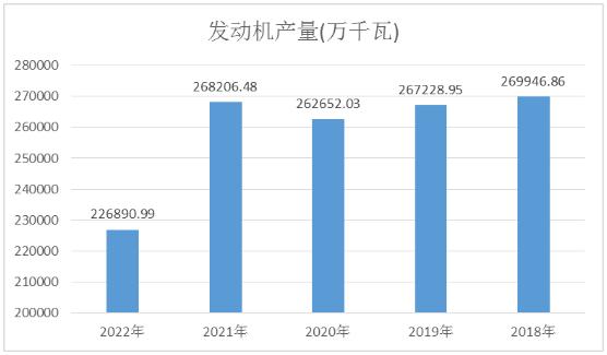 图表:2018年-2022年发动机产量数据