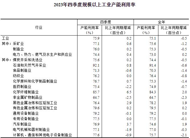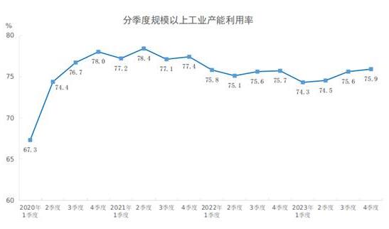 2023年四季度全国规模以上工业产能利用率为75.9%