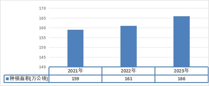 中国目前已成为世界最大的花卉生产基地。我国花卉种植面积保持基本稳定,设施栽培比率达到20%;主要花卉自育品种市场占有率达到25%;花卉交易与物流网络体系健全;2023年我国盆栽植物种植面积将延续上年扩张减缓的趋势,生产规模会有小幅增加,但老牌盆花主产区生产面积变动不大,2023年我国花卉种植面积达到166万公顷,有效的支撑下游行业的需求。