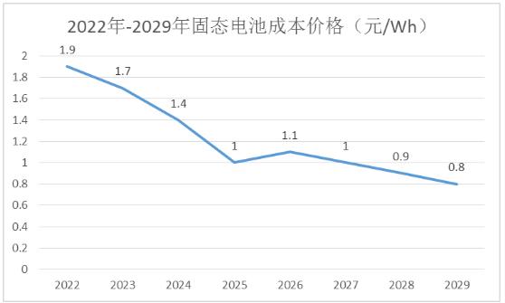 图表:2022年-2029年固态电池成本价格(元/Wh)