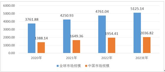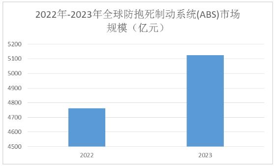 图表:2022年-2023年全球防抱死制动系统(ABS)市场规模(亿元)