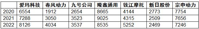 图表:2020-2022年我国电动摩托车企业从业人员对比(单位:人)