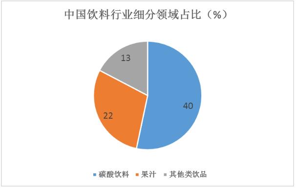 目前,中国饮料行业的细分领域主要有碳酸饮料、其他类饮料,其中碳酸饮料占比最高,为40%;其次是果汁,占比为22%;其他类饮品占比仅为13%。从细分子领域来看,近年来低糖、无糖饮料的发展前景较好。其中低糖饮料在2015-2019年复合增长率达13%,预计2023年市场规模将超300亿元。