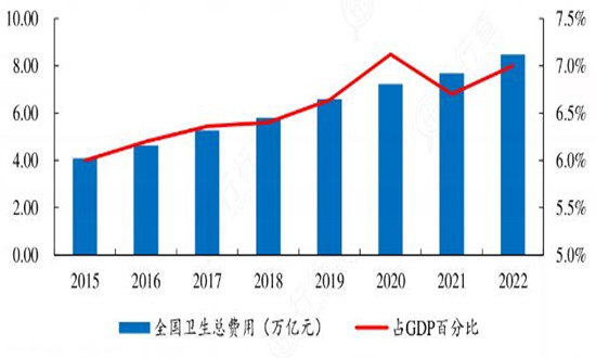 2022年我国卫生总费用初步推算为84,846.7亿元,其中政府卫生支出为23,916.4亿元,占比28.2%;社会卫生支出为38,015.8亿元,占比44.8%;个人卫生支出为22,914.5亿元,占比27.0%。社会卫生支出占比较2021年小幅度缩减,个人卫生支出比例缩减,个人医疗卫生负担减轻。