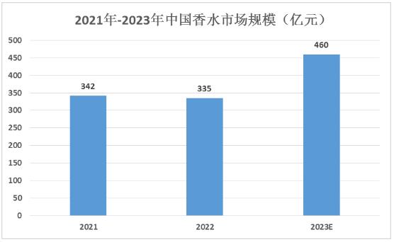 图表:2021年-2023年中国香水市场规模(亿元)