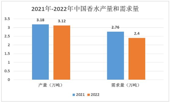 图表:2021年-2022年中国香水产量和需求量