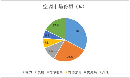 在市场上的竞争格局方面,中国空调电器行业前五大品牌的市场份额持续提高,2022年达到了82.4%,比上一年提高了2.7个百分点。其中,格力、美的、海尔智家、海信家电和奥克斯分别占据了32.8%、25.6%、10.4%、7.3%和6.3%的市场份额,均实现了同比增长。