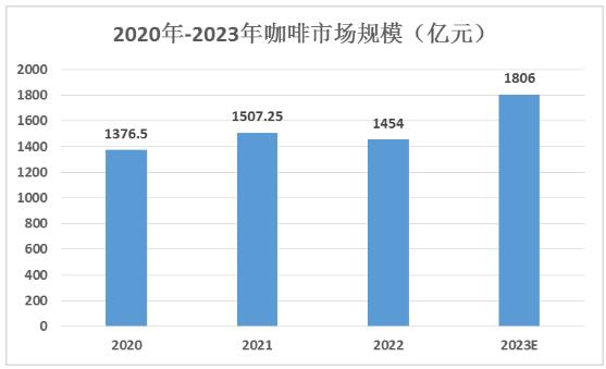据中研普华产业院研究报告《2024-2029年中国咖啡产业链供需布局与招商发展策略深度研究报告》分析:2021年我国咖啡市场规模1507.25亿元,同比2020年的1376.5亿元增长了9.5%,预计2023年中国咖啡产业规模将达到3693亿元。