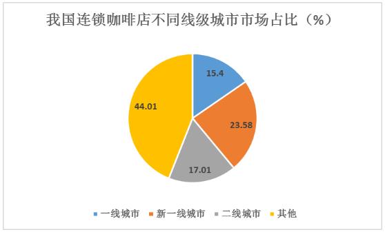 图表:我国连锁咖啡店不同线级城市市场数量占比(%)