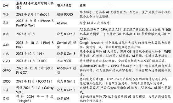 各厂商AI手机布局情况分析
