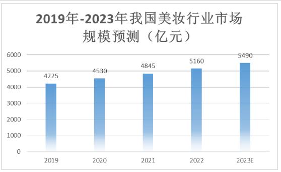 据中研普华产业院研究报告《2024-2029年版美白化妆品市场行情分析及相关技术深度调研报告》分析:截止至2018年中国美妆行业年产值约4000亿元左右。根据美妆行业的发展趋势,预测2019年我国美妆行业市场规模将达到4225亿元,2022年中国美妆行业市场规模将突破5000亿元,并预测在2023年中国美妆行业市场规模将增长至5490亿元左右。