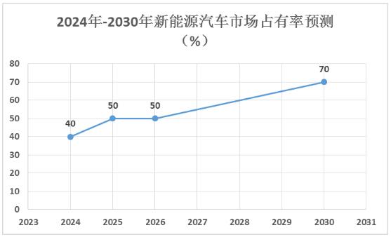 中国科学院院士欧阳明高在中国电动汽车百人会成果发布会暨百人会论坛(2024)中表示,新能源汽车市场占有率2024年将接近40%,2025年接近50%,2026年超过50%,新能源汽车占到市场的主导地位,预计到2030年,中国在新能源汽车保有量会达到1亿辆,年销量会达到2000万辆,市场占有率超过70%。