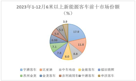 金旅客车居第四,累计销量为3206辆,市场份额为8.02%。