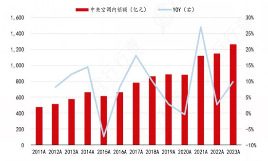 近年来受益于国内经济的快速增长,人民对生活居住环境舒适度要求的提高,以及中央空调在工商业应用领域的拓展,我国中央空调市场整体呈现增长态势。