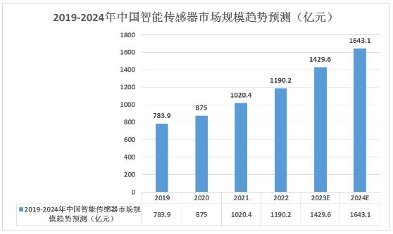 2022年中国智能传感器市场规模达到1190.2亿元,较上年增长16.64%。2023年中国智能传感器市场规模将增至1429.6亿元,2024年将增至1643.1亿元。这一增长趋势反映了智能传感器在各个应用领域,特别是在工业、汽车及通信等领域的广泛应用和市场认可。