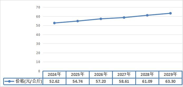 随着种植技术的不断发展和提高,串番茄的产量和品质得到提高,同时随着串番茄的营养价值得到更多的认知,未来串番茄价格走势呈上涨趋势,预计2029年每公斤串番茄价格达到63.30元。
