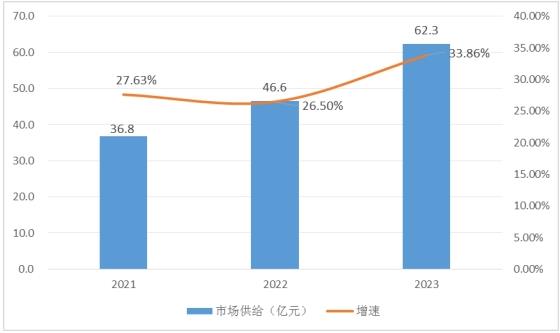 漏泄电缆之前一直被外国品牌所把持,如安德鲁、安弗施为代表。自2007年开始越来越多的国内企业进入漏泄电缆市场,竞争压力逐渐增大,其中不少品牌在市场中脱颖而出,中天科技、汉胜、享鑫都是国内第一竞争梯队。2021年市场供给规模约为36.8亿元,至2023年增长至62.3亿元左右。