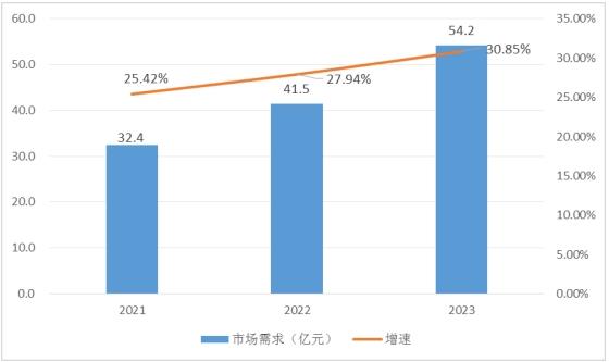 图表:2021-2023年中国漏泄电缆需求市场规模