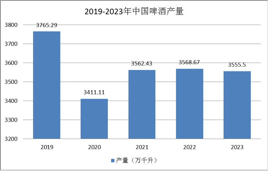 据国家统计局数据显示,2023年1-12月,中国年主营业务收入2000万元规模以上企业啤酒产量3555.5万千升,同比增长0.3%。其中2023年12月,啤酒产量214.8万千升,同比下降15.3%。出口啤酒数据:2023年1-12月,中国累计出口啤酒62.103万千升,同比增长29.5%;金额为31.854