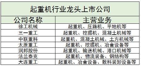 徐工机械(000425):徐工机械是中国起重机行业的领军企业之一,主要从事起重机械、铲运机械、压实机械、路面机械、桩工机械、消防机械、环卫机械和其他工程机械及备件的研发、制造、销售和服务工作。公司具有悠久的历史和丰富的经验,产品广泛应用于各种工程建设领域,深受用户好评。